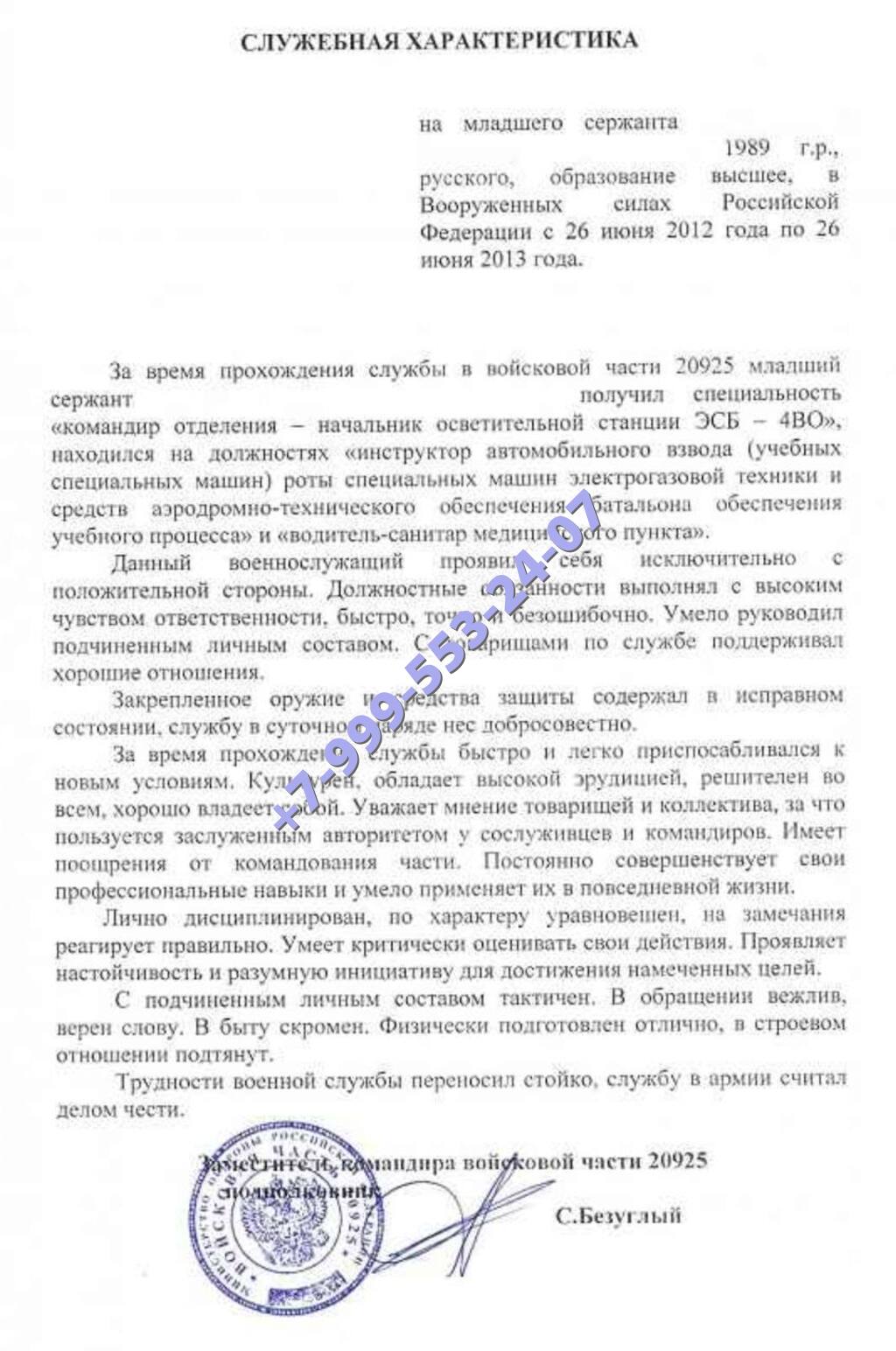 Наша компания предлагает заказать характеристику с места военной службы с доставкой. Документ легальный, имеет правовой статус.